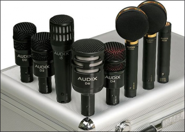 1 x Audix D6 (für Bass-Drum), 1x Audix i5 (für Snare-Drum, Guit-Amp, Bläser), 2 x Audix D2 (für Tom, Conga, Guit-Amps, Bläser), 1 x Audix D4 (für Floor-Tom, Bass-Amps, Djembe, Saxophon), 1 x Audix SCX1-hc (für HiHat, akustische Instrumente), 2 x Audix SCX25-A (für OverHeads, Room-Miking, Vocals, akustische Instrumente), 4 x Audix D-Vice (Schwanenhals Rim-Klemmen) und 2 x Audix SMT-25 (elastische Aufhängung für SCX25-A)